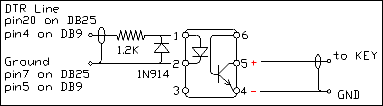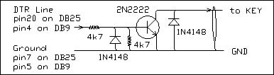 This will allow programs such as CWType or WinWarbler to hard-key the radio via the key jack, just as if it was a normal straight key!