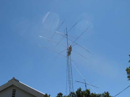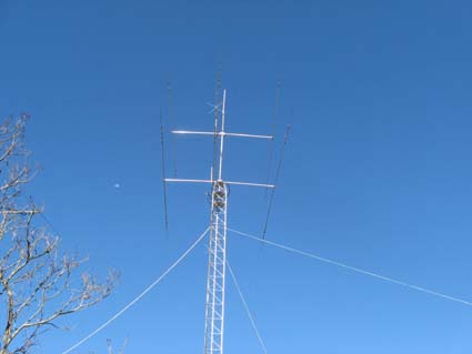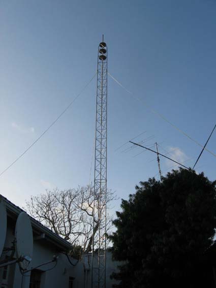 For those interested in heights : the tower is 49.5ft (15m) high; the A3S is mounted at 50ft; the A3WS is 58ft (17.5m) up, and the X50 is 61ft (18.5m) off the ground. The 80m dipole is mounted at 47ft.