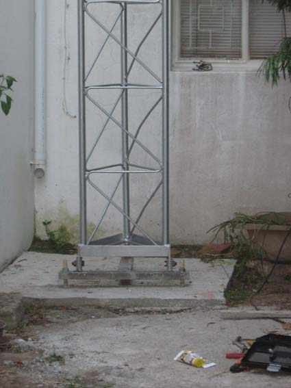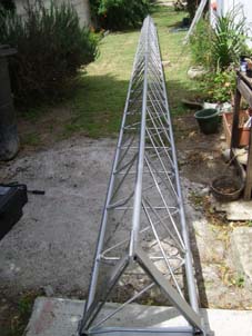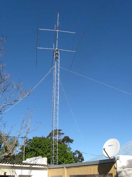 The greatest dream of any Amateur Radio operator is to have an imposing antenna tower topped with large antennas. Since embarking on the adventure of HF in 2005 I have been using a 9m (30ft) high antenna tower, and have longed for more height. When I acquired my WARC band beam, I dreamed of being able to stack the two antennas on a high tower. Finally this has become a reality during 2010!In 2008 my friend Donovan ZS2DL obtained a Webb "Galaxy" tower that had become surplus at a local Military base. This tower comprised three 6m long sections and a 3m tapering top section. Upon deciding that this tower would not be suitable for his location, Donovan offered this tower to me for free, provided I arranged collection. Enlisting the help of my friends Glen ZS2GV and Basie ZR2BA, I arranged for collection using Glen's trusty Isuzu LDV, and the tower was transported to my house. As our municipal regulations do not allow a tower to exceed 15m (50ft) we dropped off one 6m section at Basie's home along the way. This left me with two 6m sections and the top section.