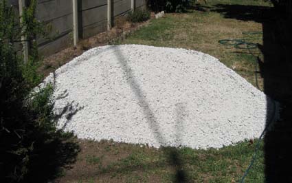 In preparation for the mixing of the concrete base, 3 50kg bags of cement and 2 tons of coarse crusher run were ordered, and arrangements were made for a builder to do the work on Saturday morning 6 March 2010. To my great disappointment the builder did not show up to do the job, and was unreachable on his cellphone the whole weekend. Glen ZS2GV then stepped in, and arranged for his helper Elton do do the job on Saturday 13 March.