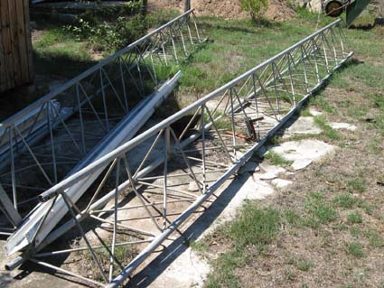 The tower sections stored in the back yard of my house